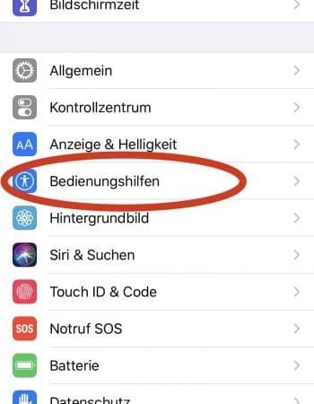- Tippe auf den Punkt „Bedienungshilfen“.